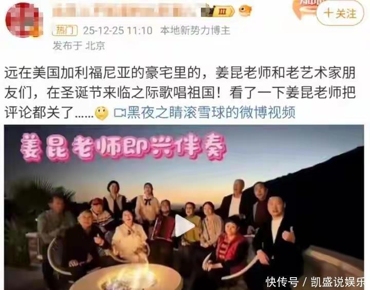 圣诞节前后,网上忽然疯传一段他和其他几位老艺术家在美国豪宅庆祝圣诞的视频,这本也没什么,但偏偏这些人还笑容灿烂的唱《我和我的祖国》何其讽刺?