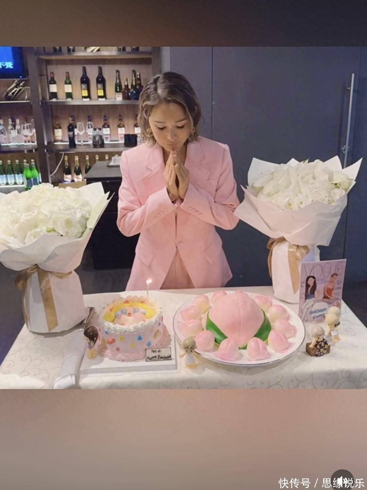 洗米嫂是真会保养,45 岁穿一身粉红西装,内搭白蕾丝,在人群里最亮眼。她那好状态不是靠医美,全是常年健身练出来的,透着股健康劲儿。蛋糕也挺用心,一个是泡泡玛特的 CRY BABY 造型,一个是寿桃样儿的,旁边还摆着两束白鲜花,看着就舒服。 合照肯定少不了,各种组合拍了个遍。全家福里她站中间,公婆分两边,晚辈蹲前排,别提多和睦了。她跟公公还贴脸合影,翁媳感情是真不错。跟继子周柏豪也亲,拍照时一手托着他脸,还嘟嘟嘴卖萌,比亲母子还热络。