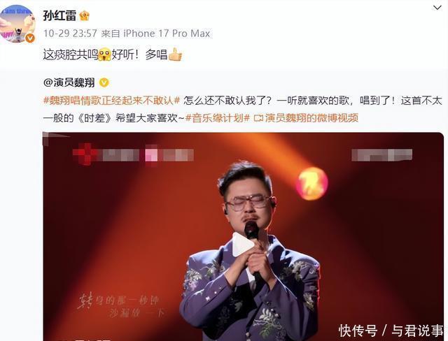 魏翔老师也是回复了雷哥,看得出来两人的关系还是蛮不错的,但话说回来,魏翔老师这嗓音确实不一般, 他在影视剧中给人一种“稀奇古怪”的感觉,尤其是声音,那可以说是千变万化的,以为他也就能“扮丑”了,谁能想到他在唱歌方面还这么的厉害。